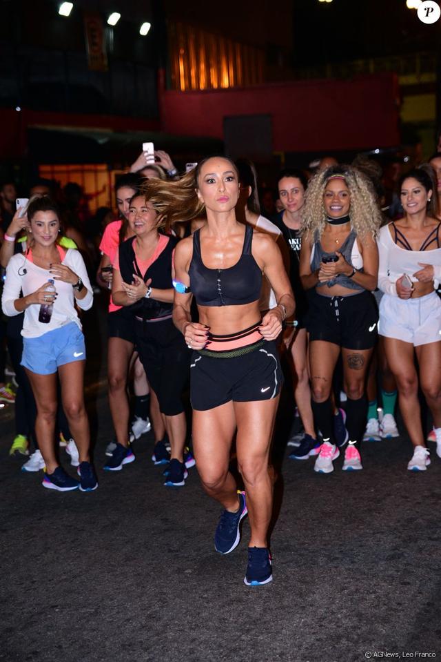 Sabrina Sato mostrou seu preparo físico durante uma corrida feminina que aconteceu na noite deste sábado (10), em São Paulo. Convidada pela Nike para estar comandar a "Só Vai", a rainha de bateria da escola de samba Vila Isabel e da Gaviões da Fiel esteve à frente de um grupo de mulheres por 4,5 quilômetros no percurso iniciado na avenida Prestes Maia, na capital paulista. Na sessão de fotos, a noiva de Duda Nagle , com quem comemorou dois anos de relacionamento, fez alongamentos que exigem elasticidade e, de top e short, deixou à mostra seu corpo musculoso conquistado com dedicação à prática de exercícios físicos.